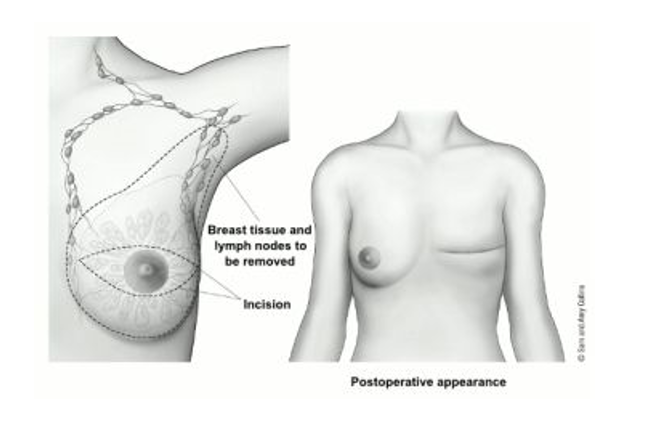 During a total (simple) mastectomy, the surgeon removes whole of the breast tissue, nipple, areola and skin overlying it. Newer mastectomy techniques may leave some parts of the breast, such as the skin or the nipple and allow for a more natural breast appearance following the procedure. This is also known as skin-sparing or Nipple sparing mastectomy.