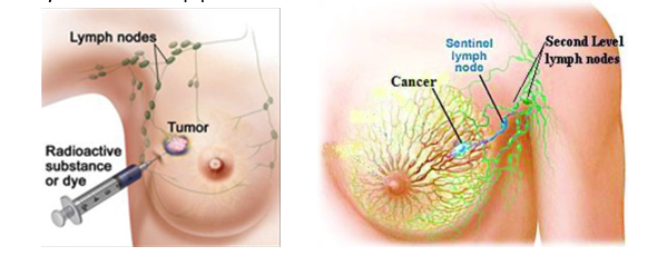 It is a technique developed in recent years to determine if breast cancer has spread to the lymph nodes in the axilla (armpit). The sentinel lymph nodes (SLN) are the first few lymph nodes that the lymph ducts drain into. The surgeon injects a blue dye or a radioactive dye or both into the area of the primary tumour site or just beneath the nipple- areola complex.