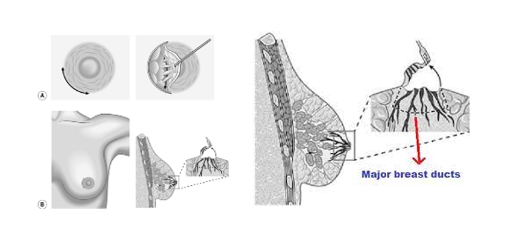A Macrodochectomy is a surgical procedure in which all the ducts are removed from the nipple areola complex. It is usually undertaken when a patient has nipple discharge from multiple ducts.
